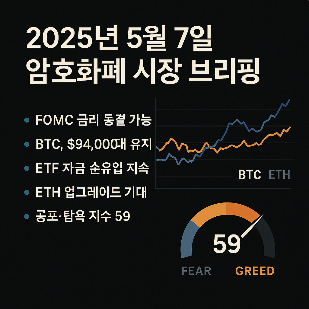 | 2025년 5월 7일, 8일 코인(암호화폐) 브리핑: 금리동결에도 반등 성공, 내일 전망은? (1) | 2025.05.08 |
