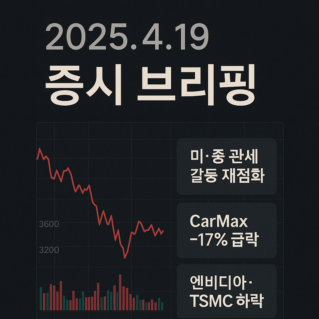 전반적으로 2025년 4월 19일 주식시장은 무역 분쟁의 긴장감 속에 출렁인 하루였습니다. 미·중 관세 전쟁 재점화 소식에 투자 심리가 얼어붙으며 주요 지수와 종목들이 큰 변동성을 보였지만, 장 막판 일부 호재 뉴스로 낙폭을 다소 회복하는 모습으로 마무리되었습니다. 하루를 요약하면 "무역 이슈에 울고 기업 실적에 웃은 날"이라 해도 과언이 아닙니다. 투자자들은 시장의 단기적인 소음에 휘둘리지 말고, 냉철하게 펀더멘털을 점검하며 포트폴리오를 재정비할 타이밍입니다. 향후 미·중 협상 진행 상황과 각국 정책 발표에 따라 시장이 급등락할 수 있는 만큼, 리스크 관리에 유의하면서도 과도한 공포로 인한 저점 매수 기회는 놓치지 않는 균형 잡힌 전략이 요구됩니다. 다음 주에도 변수는 많겠지만, 철저한 정보 분석과 분산 투자로 변동성에 대비한다면 어떤 시장 상황에서도 살아남을 수 있을 것입니다. 투자자 여러분께서는 냉정함과 유연함을 갖추고 다가오는 새로운 한 주를 대비하시기 바랍니다.
