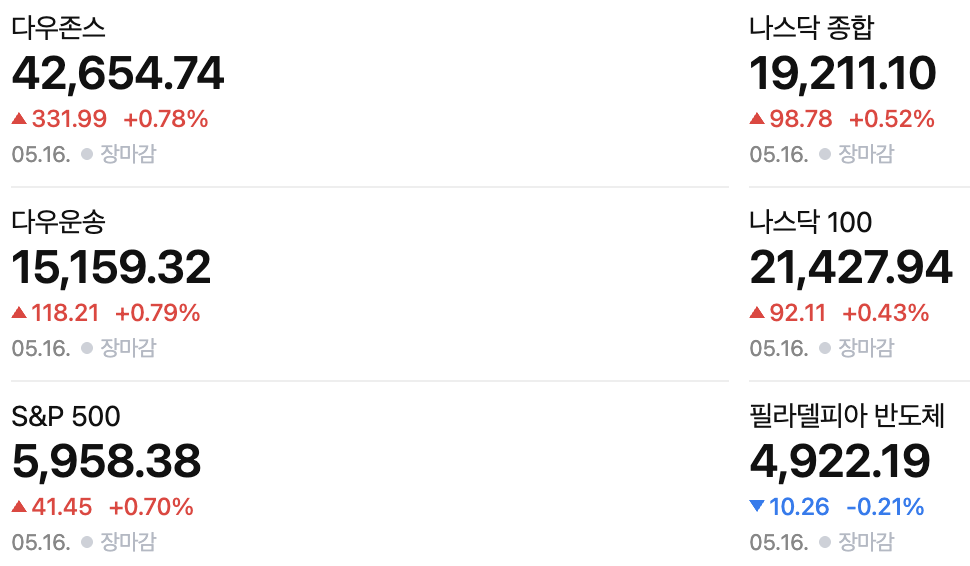 | 2025년 5월 13일 17시 증시 브리핑: 미중 관세 휴전 타결에 뉴욕증시 급등, 향후 투자 방향은? (6) | 2025.05.13 |