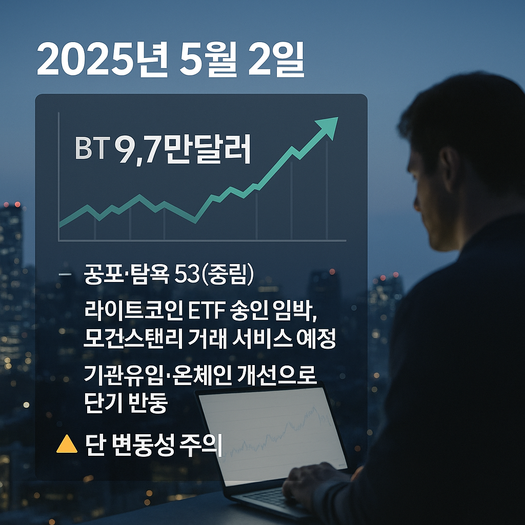 결론: 5월 2일 코인 시장은 온체인 데이터와 거시 변수에 따라 반등 또는 조정으로 크게 엇갈릴 수 있는 국면입니다. 국내외 뉴스와 지표를 종합적으로 살펴볼 때 현재는 소폭 긍정 기조지만, 반등이 과열되지 않도록 경계할 필요가 있습니다. 특히 위에서 언급한 코인들은 시장 흐름을 선도할 가능성이 높으므로 주목하되, 언제나 리스크를 관리하며 신중히 투자해야 합니다. 안전한 투자 되시길 바랍니다.