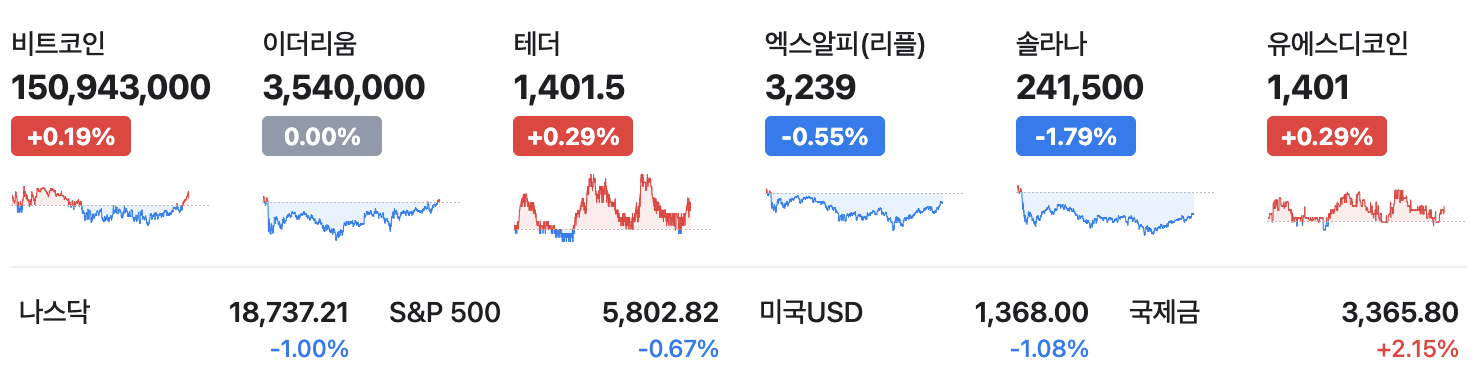 업비트 주요 암호화폐 시세 – 국내 대표 거래소 업비트에서 5월 25일 주요 코인들은 강세 속 혼조 마감했습니다. 비트코인은 업비트 기준 1억 5천094만 3천 원으로 하루 0.19% 상승 마감하며 원화 기준 신고가 영역을 유지했습니다. 이더리움은 3백54만 원으로 보합(0.00%)을 기록, 전일과 동일한 가격대에 머물렀습니다. 리플(XRP)은 3,239원으로 -0.55% 조정받았고 솔라나(SOL)는 241,500원으로 -1.79% 하락하여 일부 알트코인은 차익실현 매물이 출현했습니다. 한편 테더(USDT)와 USD코인(USDC) 등 스테이블코인은 각각 1,401.5원(+0.29%) 수준으로 원화 환율 변동분을 반영하며 1달러에 연동된 가격을 유지했습니다. 전반적으로 비트코인 강세에 힘입어 시가총액 상위 코인들이 견조했으나, 알트코인들은 종목별로 등락이 엇갈리는 모습을 보였습니다. 국내 시장에서는 여전히 해외 대비 약 2~3%의 비트코인 가격 프리미엄이 관찰되어, 국내 투자자들의 매수 열기가 상대적으로 높음을 시사했습니다.