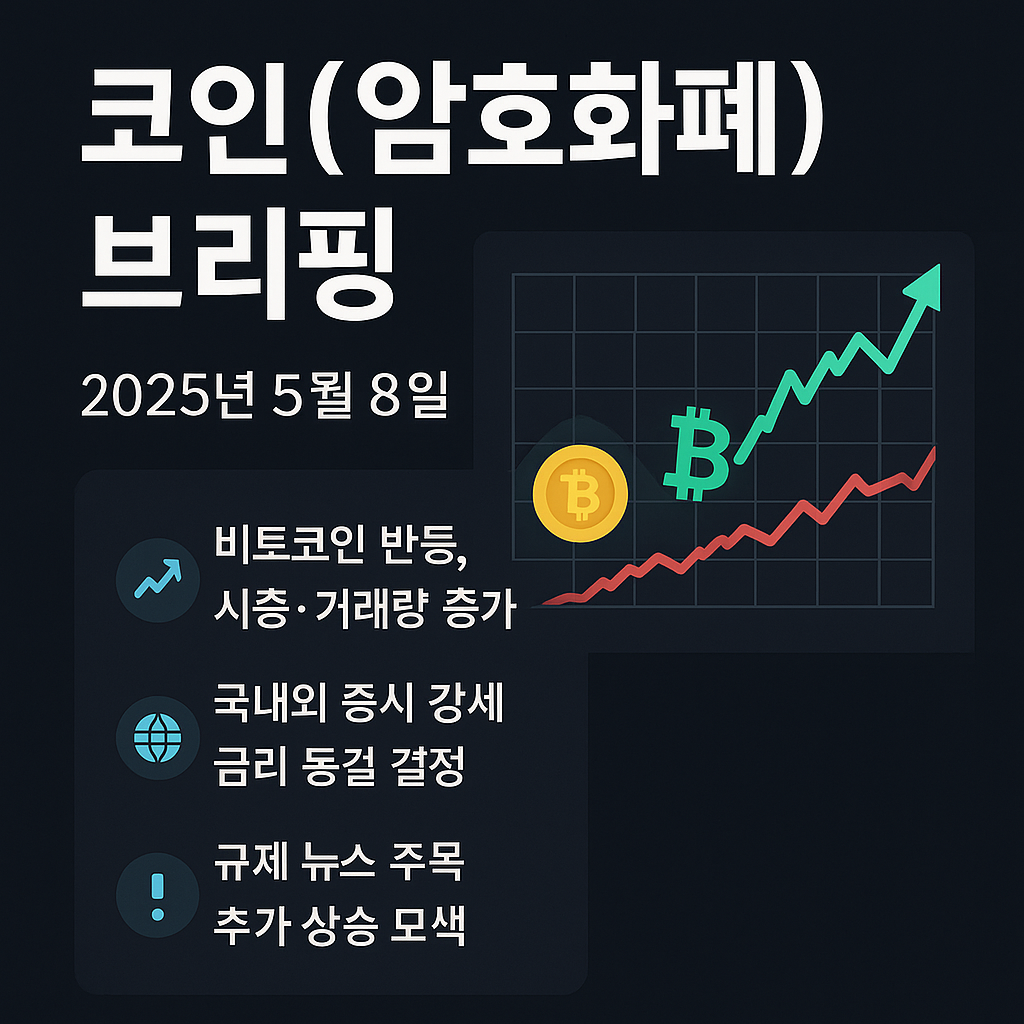 | 2025년 5월 9일, 10일 코인(암호화폐) 브리핑: 비트코인 10만 달러 재돌파! 5월 10일 시장 전망은? (1) | 2025.05.10 |