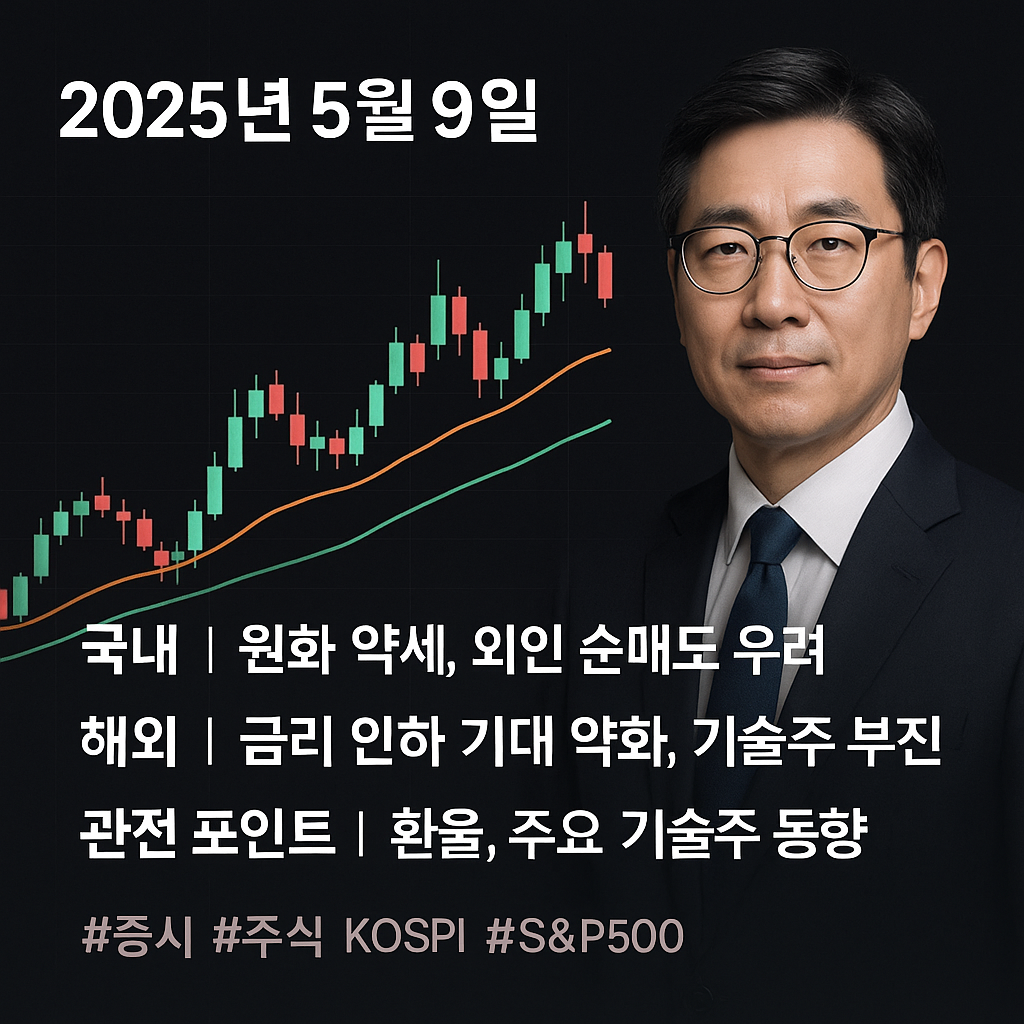 - 자금 흐름 (③): 외국인과 기관 매매 동향, 고객 예탁금(투자 여력), 선물 옵션 미결제약정(특히 옵션만기일 이후 흐름) 등을 관찰해야 합니다. 5월 8일 옵션만기를 통과하며 단기 수급은 재조정 중입니다. 기업공시 등 호재∙악재 뉴스에 따른 개별 종목 수급 변화도 유의해야 합니다.