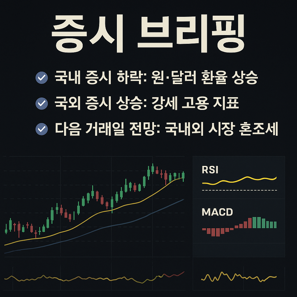 - 상승 배경: 미국·영국 무역협상 타결 소식은 글로벌 경제에 대한 불확실성을 완화했다. 특히 주요 자동차·철강 관세 인하가 포함되자 관련 업종과 미국 증시에서 긍정 반응이 나왔다. 달러 강세가 지속되는 가운데 원/달러 환율 상승은 수출업체에 유리하게 작용했고, 자동차·항공 등 수출 중심 업종 주가를 지지했다. 반도체·IT 업종의 실적 호조 전망도 기술주를 강세로 견인했다.